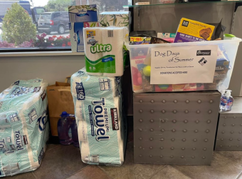 Supplies are rolling in for the Dog Days of Summer! This fundraiser is actually a supply drive. We’re collecting items for Paws With A Cause (PAWS), our neighbor and a very worthy non-profit organization that provides service dogs for people with disabilities. We are proud to be able to help curtail the cost of training by providing the supplies from the PAWS Wish List.