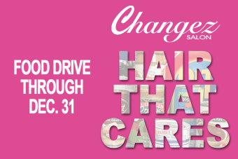 Our annual Hair That Cares Food Drive runs through the end of the year. Get $2 OFF for every non-perishable food item that you bring in (up to 5 items for a $10 saving in the new year). Drop off your donations at Changez!