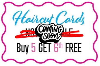 Don’t miss out on this great opportunity to save money! Through the month of September, pay for 5 haircuts and get a 6th haircut FOR FREE!! Pick up your Haircut Card today. Limited time.